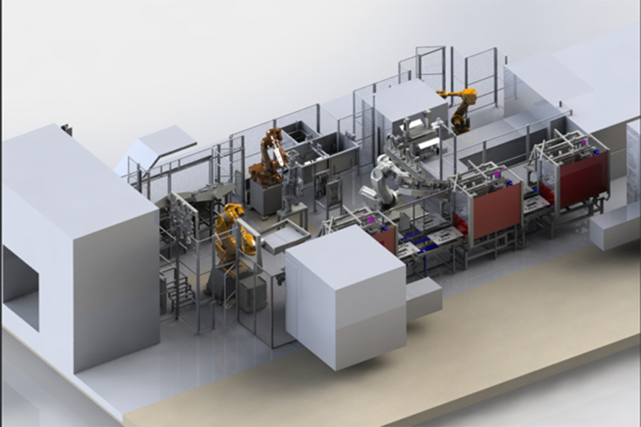 Extensive international experience in automated systems for preparing sand cores for engine blocks, with robotic operations including handling, fastening, paint dipping, and furnace loading for complete package processing.